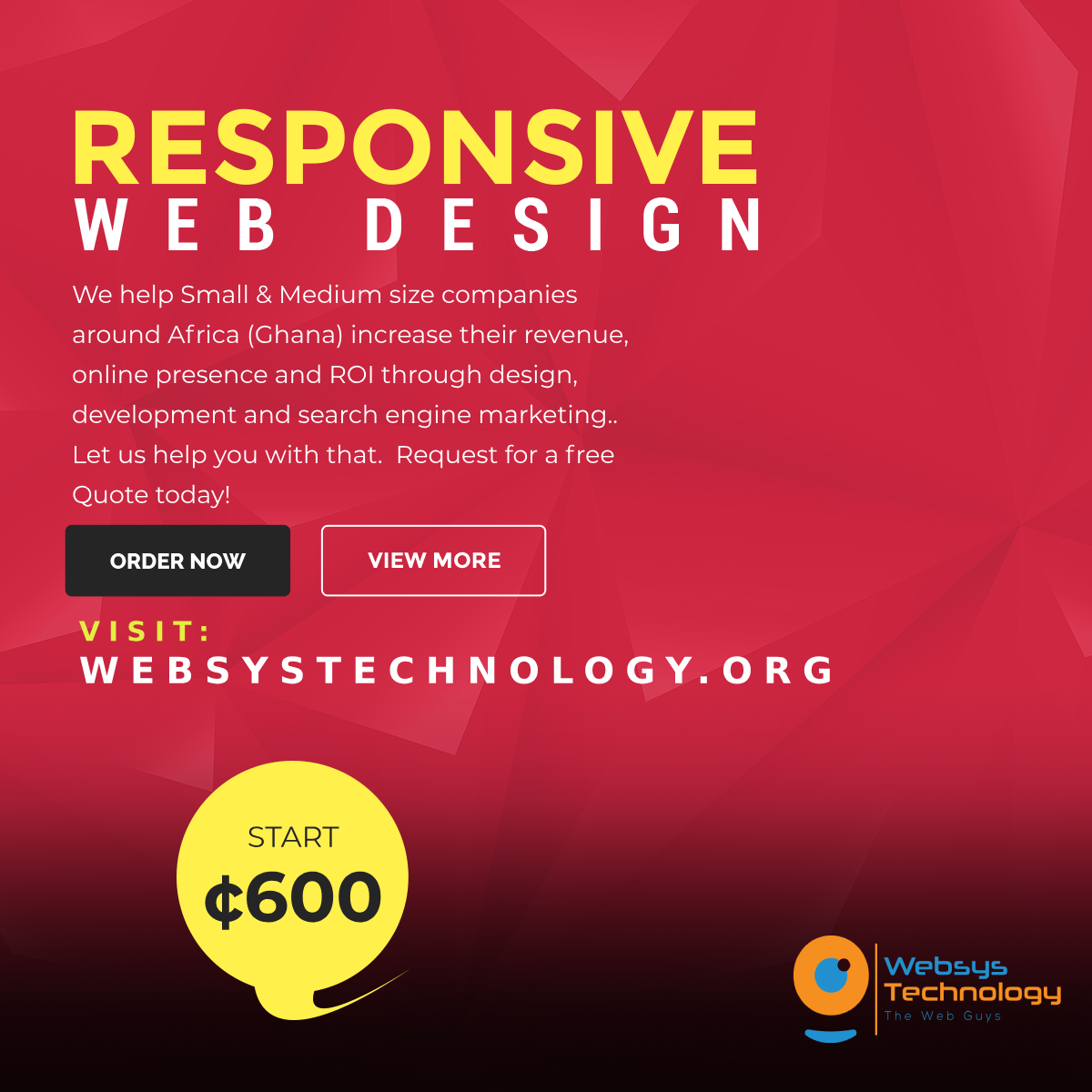 Select PackageBrochure-style Website (Starter) - ₵ 2500Brochure-style Website (Growth) - ₵ 2800Brochure-style Website (Advanced) - ₵ 3300Brochure-Style Website (Ultimate) - ₵ 5000Ecommerce Website (Starter) - ₵ 5500Ecommerce Website (Growth) - 6000Ecommerce Website (Advanced) - ₵ 7000Ecommerce Website (ultimate) - ₵ 7700